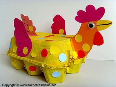 α. Κοτούλες και κοτοπουλάκια με χάρτινες θήκες αυγών